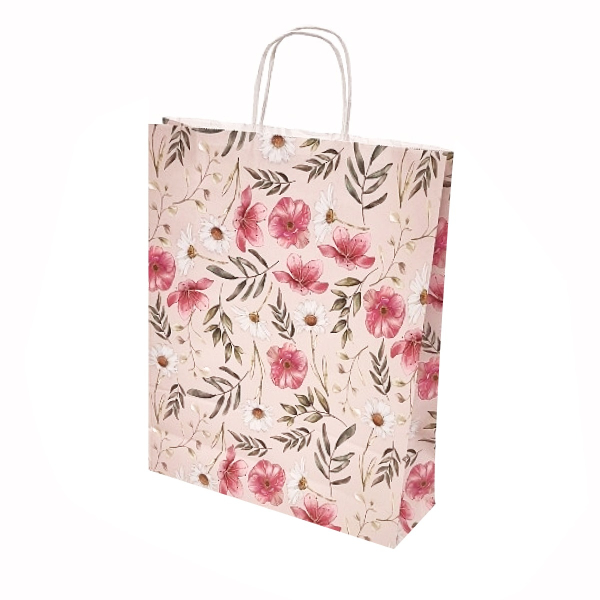 Krafta papīra maisi ar vītiem un plakaniem rokturiem ir ļoti populārs iepakojuma veids dažādās tirdzniecības jomās.
